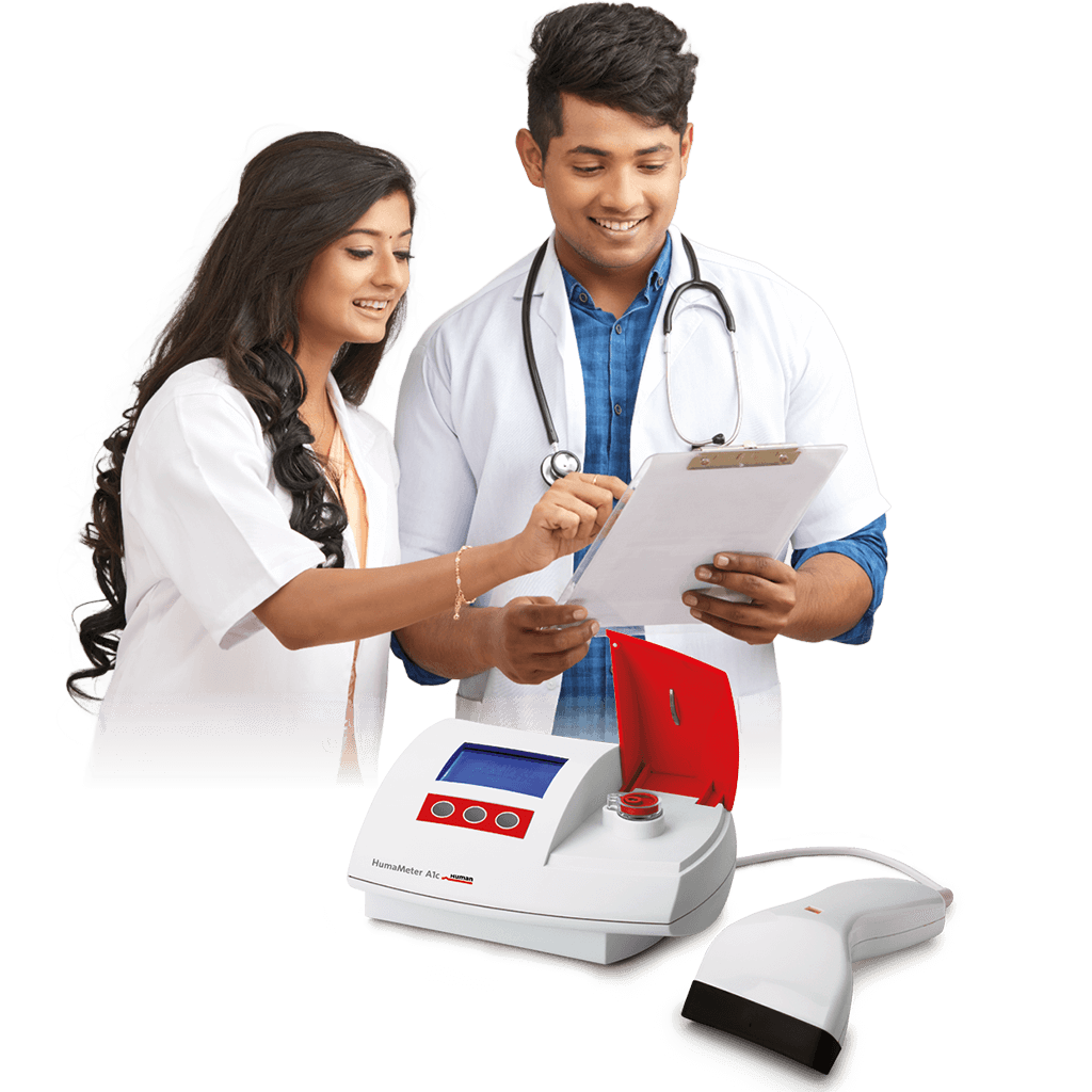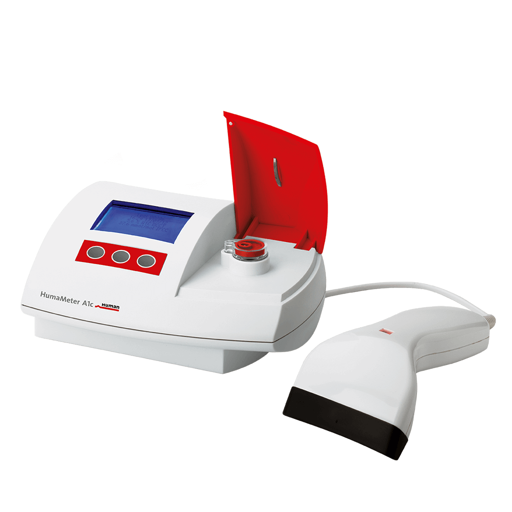 Processing only 4 µl of capillary blood in less than 5 minutes HumaMeter A1c is the ideal device for intuitive and accurate determination of HbA1c for small laboratories, medical offices and on-the spot testing. The HumaMeterA1c system is intended for monitoring long-term glycaemic control in individuals diagnosed with diabetes.